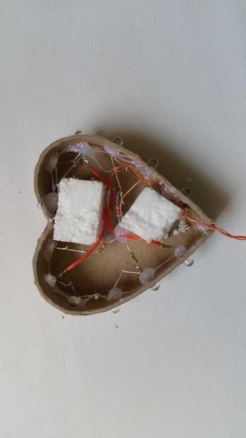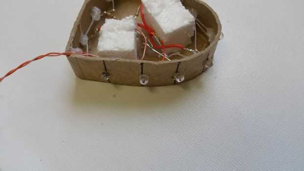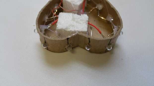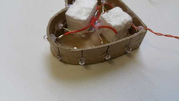 Uniformemente colocar el led en el corazón y hasta de alambre según lo sugerido por la herramienta.