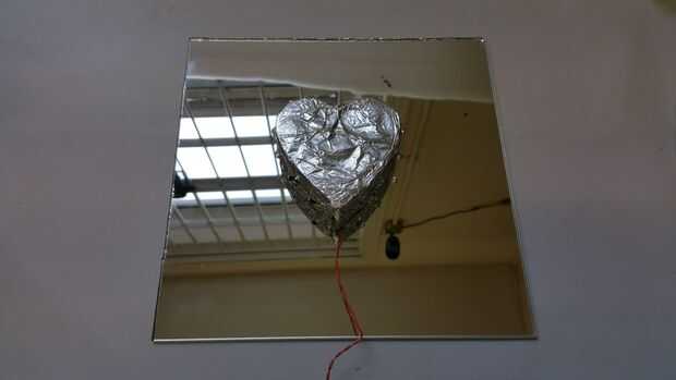 Dentro el corazón coloqué 2 pedazos de poliestireno en el corazón, aseguran que estos sobresalgan ligeramente como se necesite poner alguna cinta de doble cara en estos y pegarlas en el espejo de respaldo.
