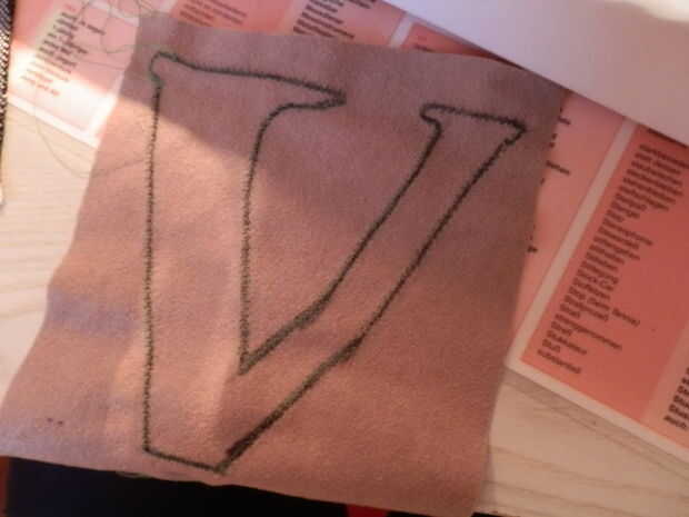 Puede utilizar unas agujas para fijar las letras para una costura mejor.
