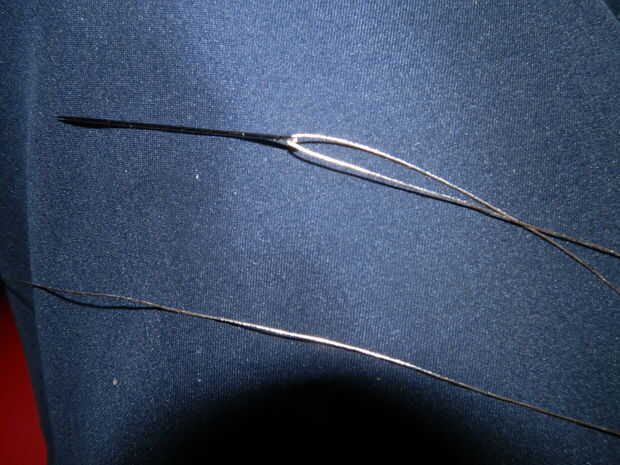 Utilicé un hilo conductor para fijar los contactos. Usted no tiene una técnica especial, usted puede hacer un nudo con la aguja y vamos al otro led