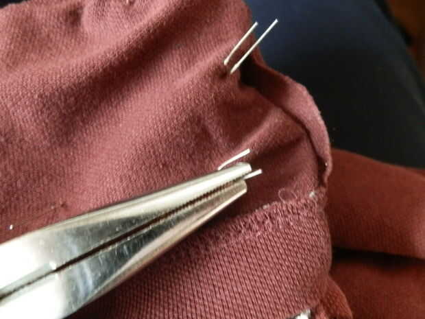 Para conectar los extremos correctos puede comenzar a doblar los cátodos (o ánodos) con unos alicates redondos.