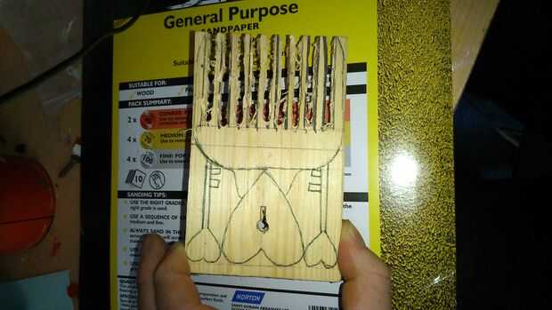 Me decidí a tener diez dientes en el peine. Perforé nueve hoyos con una broca de 4mm donde quería mis dientes para comenzar. Luego cortar entre ellos con la Sierra de marquetería. Estaba un poco impaciente y había apresurado mi sierra por lo que es un poco áspero.