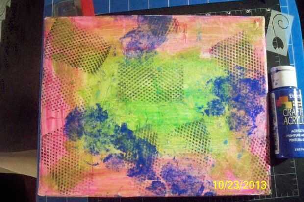 paso 5: no estaba contento con el suelo de lona trasera así que tomó algunas pintura azul pavo y esponja aleatoriamente sobre el terreno posterior para dar otra capa. Deje se seque por completo.