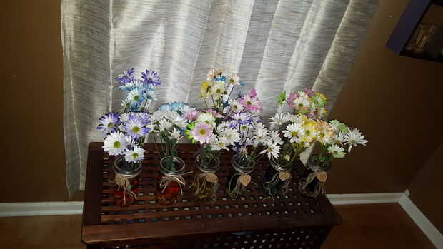 los centros de mesa resultaron gran! los paquetes de semilla son simples así. comprar sobres pequeños. imprimir etiquetas y aplique. Tengo una estampilla especial para mi esposa y yo así que es la porción del arco iris.