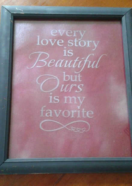 He encontrado esta cita online y me encantó. Así, hice uno de mi propia para entrar en mi habitación al otro lado de mi cama para mi marido y yo, y lo podemos ver cada vez que miramos a esa pared. Me encanta la manera que esto resultó. Espero que os guste, también.