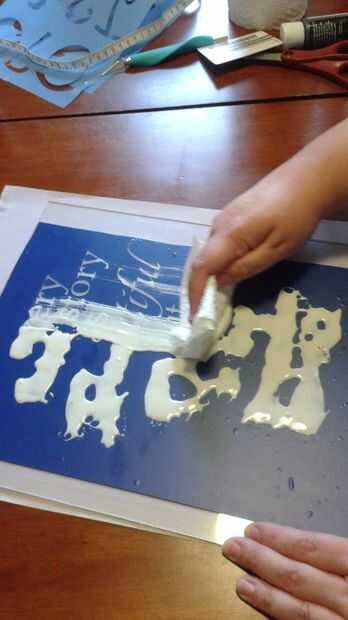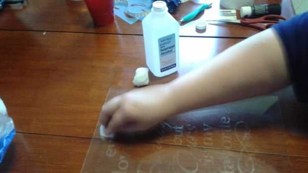 Si eres lo bastante afortunado como tener una silueta de corte de vinilo y el hermoso programa para crear su diseño, entonces sabrás qué hacer. Si no, usted puede necesitar usar cinta adhesiva y una galería de símbolos para obtener los resultados que desea. Después he creado el diseño, cortar el vinilo para montar y poner en el cortador para ver esta increíble máquina ir. Tomé prestado este cortador de un amigo impresionante como yo no soy lo suficientemente frío como a uno mismo. Una vez hice el corte es genial, he utilizado un cuchillo X-acto para sacar las letras desde el diseño. Después de fue completamente desmalezada, pongo vinilo adhesiva sobre él para transferir la inscripción a mi hoja de vidrio. Pelado el enmascaramiento antes de raspar el vinilo para asegurarse de que no hay burbujas de aire. Esto es muy importante como quiera que la fuente sea lisa y limpia. Yo entonces había cepillado grabado crema sobre toda la pieza, asegurándose de que todas las palabras y letras fueron cubiertas totalmente. Dejé el conjunto crema durante unos 30 minutos mientras trabajé en los dos pasos siguientes. Después de la crema que tiene un montón de tiempo para trabajar, limpiar el vidrio, asegurándose de enjuagar muy bien para evitar que la crema de grabado de las piezas del vidrio de la marca no lo quiero estar. A continuación retirar el vinilo y limpiar el vidrio con alcohol y algodón bolas del frotamiento. Esto ayuda a deshacerse de cualquier crema residual y las huellas dactilares.