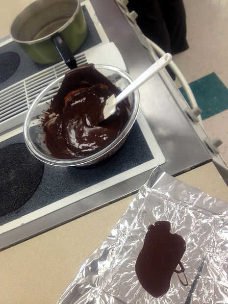 Ahora un regalo de San Valentín no está completo sin un aspecto de caramelo. Permiten crear una barra de chocolate de amor de la paloma. Estamos creando un simple molde para verter el chocolate derretido en. Toma el pedazo de papel utilizamos desde el frotamiento para crear nuestro interior tapa forma, traza en un trozo de tablero de núcleo de espuma. Nuevamente Asegúrese de rastro va la dirección correcta. Con un cuchillo x-acto cortado la forma de Paloma. Ahora, tome la pieza de forma negativa y pegamento en a otra pieza del tablero de la base de espuma. El interior del molde con un pedazo de papel de aluminio de la línea. Vamos a derretir un chocolate! Girar a un quemador de gama grande a 7 y coloque un recipiente con agua y hervir. Coloque un recipiente de vidrio encima del agua hirviendo y vierta cualquier chocolate para derretir (sólo usé chocolate semiamargo). Después de que se haya derretido llevarla a la forma y viértala. Con una espátula puedes incluso chocolate para asegurar que se mete en todas las grietas de la forma. Luego lo coloca en el refrigerador para enfriar. Cuando haya enfriado (dejé it al día) tomar hacia fuera y ver si cabe. Si no encaja en su caja cuidadosamente afeitado abajo con un cuchillo.