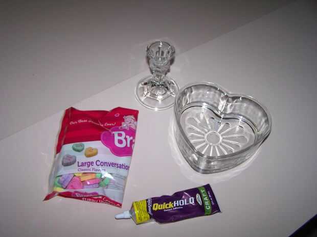 un plato de dulces o un recipiente (Yo utilicé un plato en forma de corazón de caramelo comprado en la tienda de dólar)