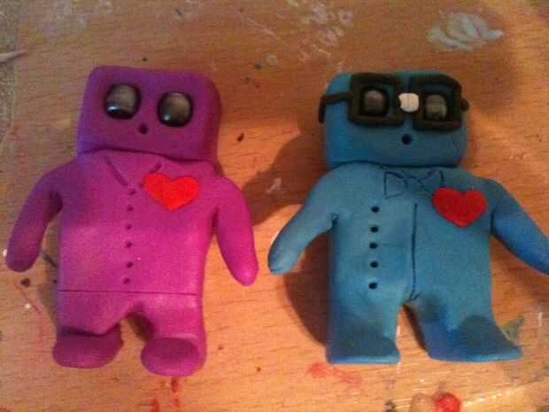 estos pequeños robots son atraídos magnéticamente entre sí y cuando besos, muestran allí amor por iluminar su corazón palpitante.Cuando la experimentación en la construcción de bobble la cabeza besos muñecas surgió con la idea de darles un toque geek