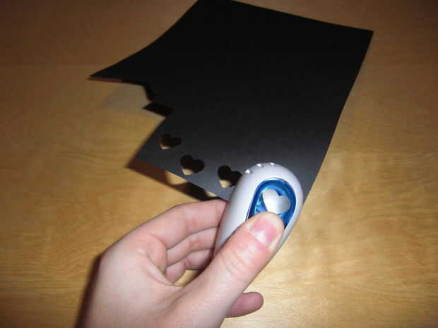 Use su golpe de corazón para recortar seis corazones de la tarjeta negra.