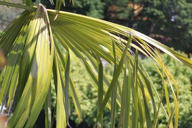 Podar tu palm. Corte una sección y enróllelo y déjelo secar. Se pueden además recortar más tarde.