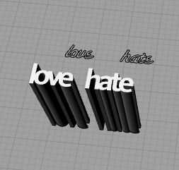 Sacando las palabras aquí se realiza eligiendo sólido > extrusión de curva plana > recta. Sólo tienes que elegir una longitud de extrusión decentemente largas para cada palabra y eres bueno.