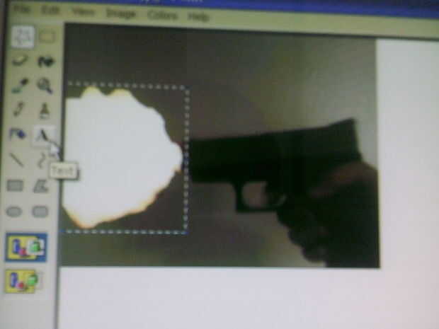 Seleccione la "estrella" en el menú herramientas.  Traza el cañón flash cómo usted quisiera que mirara.  Arrastre la imagen hasta el extremo de la boca de la pistola.