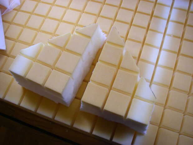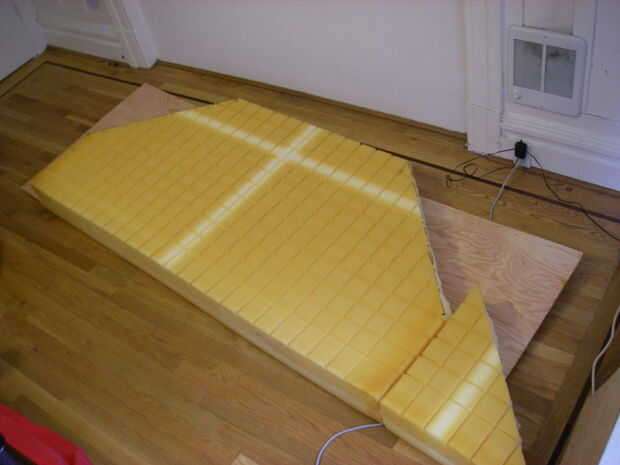 La espuma tendrá algunos rectos los bordes en los extremos si no basta ancha, usan la espuma extra cortar algunos pequeños triángulos para cada extremo de manera que la pieza va desde 72" de ancho a 90".