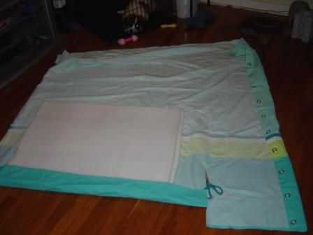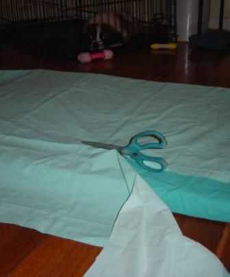 A continuación enrollar la cortina de la caja de huevo y corte la cortina de ducha exceso, asegurándose de dejar un poco en cada lado para el traslapo. Asegúrese también de que recorte el área con los anillos de metal.