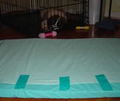 Plegar la cortina de la ducha sobre un borde, entonces enfrente de lado. Tire firmemente y utilice cinta adhesiva para sostener juntos. Empiece con una pieza en el centro y mi camino hacia fuera para reducir al mínimo las ondulaciones. Si alguien es alrededor de eso pueden cinta mientras mantienes apretado que es ideal. Si no, no es gran cosa (hice esta sin un ayudante)