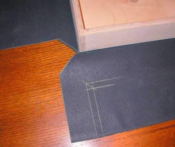 Para simplificar cosas, pegué el Tolex a la caja en 2 etapas: pegar las grandes superficies superior primero, y tratando con la complejidad de la cubierta de embalaje sobre los lados y extremos de la caja y en el interior. En aras de la durabilidad, no quería que una costura en la esquina, así que me uní las 2 piezas con un grado de 45 en el extremo de la caja, y esto aumentaba la complejidad un poco el proceso de envolver el Tolex alrededor de los lados de la caja. Después de pegar el Tolex a la superficie, luego usé una plantilla de madera para recortar las esquinas para caber aproximadamente (antes de aplicar el resto del adhesivo). He hecho la plantilla de "envoltura" de una esquina con el papel y corte las esquinas de la manera que yo quería. Entonces hice una plantilla de contrachapado oversize sligtly basada en la probeta de papel. Después de marcar y cortar las esquinas utilizando la plantilla, aplica el adhesivo en las áreas restantes de Tolex y fuera y dentro de los lados del caso. Después de permitir que el cemento de contacto a completamente seco, me envuelto de un lado a la vez y recortar las esquinas para un ajuste final, que envuelve el lado adyacente. Terminé con muy buen ajuste general, y llené los pocos boquetes leves de cortes errantes con cinta aislante líquida, que se enlaza muy bien al Tolex.
