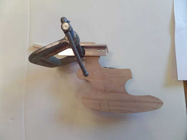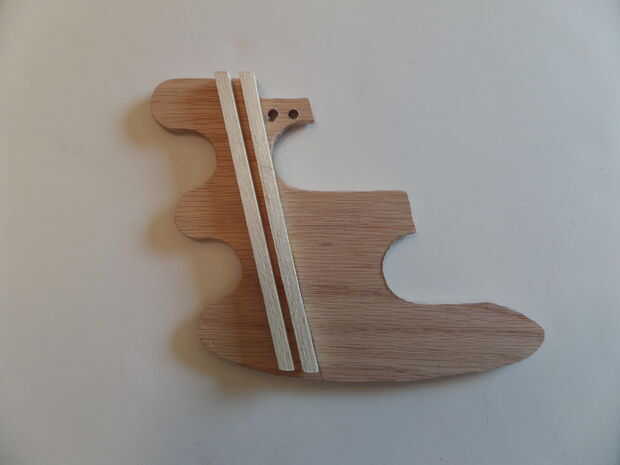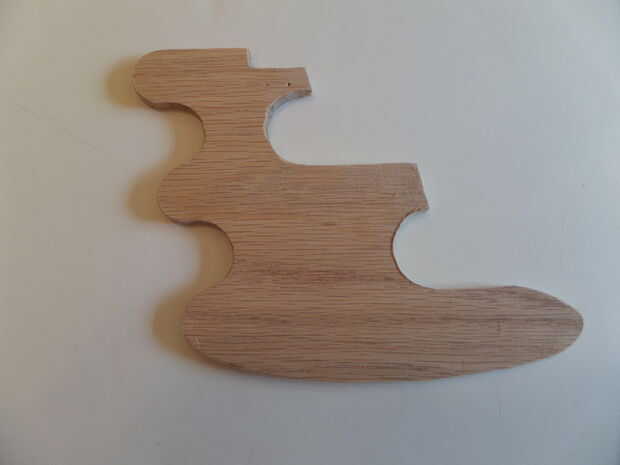 Corte la forma con una hoja de dientes finos 1/8" en la Sierra de cinta o sierra de vaivén. Lije las piezas. La lijadora de tambor Dremel funciona bien en las curvas.