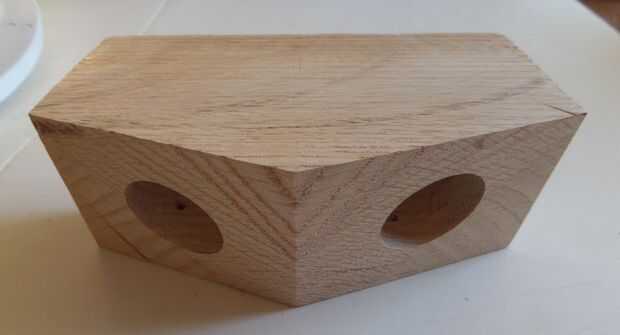 Perfore tres agujeros de 1 1/4" con la pieza Forstner 1" profundo como se muestra. Lije las piezas.