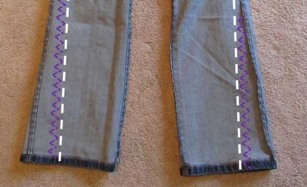 Vuelva a los pantalones del revés y cruzado de la puntada a la tela sobrante.