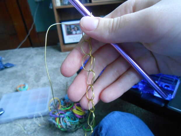Paso 1: Usted necesita... -Gancho de ganchillo-Hilo-cortador tijeras o cadenaPaso 2: iniciar Hacer un deslizamiento del nudo y poner la cadena en el gancho. Ganchillo suficientes lazos para caber alrededor de su muñeca o tobillo. (Estoy haciendo una