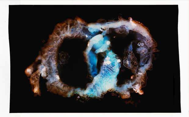 Donde piezas de mi proceso de fotografía tradicional es en am deciden hacer una impresión de. Ampliadoras fotográficas tradicionales fueron creadas para ampliar un negativo fotográfico. Yo he estado experimentando con poner diferentes objetos en la cabeza de ampliadora donde tradicionalmente se iría la negativa. Después de mucha experimentación que he emocionado más por ampliar los objetos de la vida cotidiana - cosas que la mayoría de nosotros interactuar con sobre una base regular, sin embargo rara vez consideran por su belleza. Mi primer momento de emoción llegó cuando tontamente poner algunos aros de cebolla en la ampliadora y creó esta impresión celestial de ellos.
