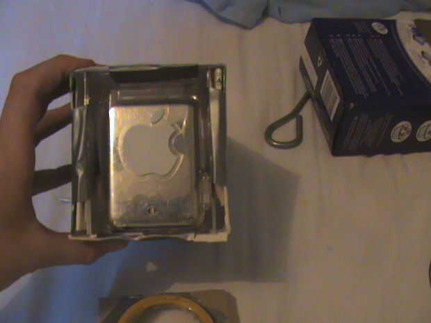 romper una pequeña sección de la parte inferior de la mitad más grande de la caso youre ipod vino en esta es donde sale el cable del altavoz.