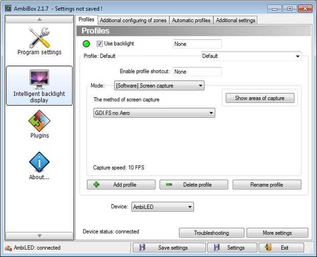 Usé AmbiBox. Pero se podría utilizar de Adafruit original código de Adalight para el proceso. Pero AmbiBox es más sencillo y lo usé durante años.