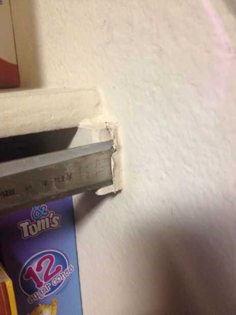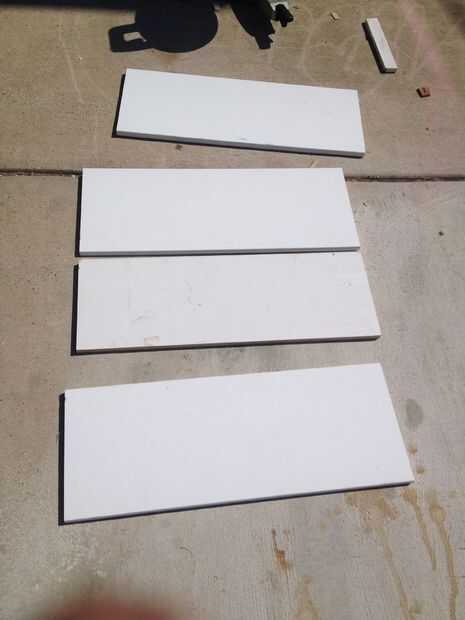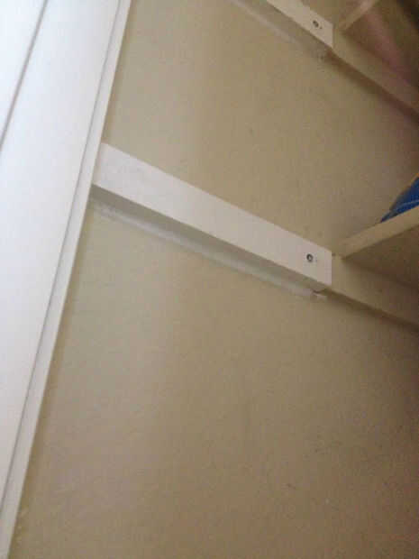 Limpia la masilla de la orilla de la contabilidad original. Es así que mis nuevas placas será tan al ras como sea posible a la Junta existente. Luego corté las nuevas tarjetas de libro mayor y el estante a la longitud necesitada. Después de localizar los montantes pre perforado y avellanado 2 tornillos en cada carril. Para los estantes agregué una gota de pegamento para madera antes de los tornillos.
