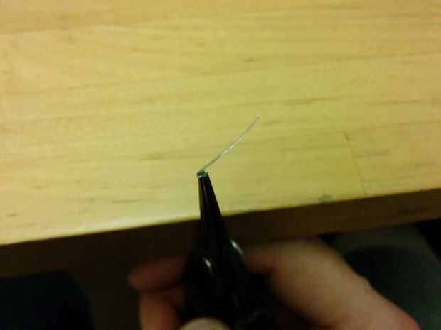 Un pequeño gancho en un extremo de un cable para envolver alrededor de un perno de la curva. Alicates pinzas son ideales para esto.