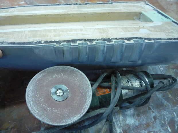 Tienda de plásticos de mi barrio con el equipo de vacform y hornos para hacer tira de este tamaño. Que para perforar pequeños agujeros en los enchufes para aspirar el plástico caliente en áreas detalladas. En esta imagen he halado el espaciador de 1" y utiliza un disco de lijado para moler de la brida del exceso y hacer la descarga plástico al enchufe. Uso demasiado cerca de un bloque de lijado para la arena final para que sea perfecto, un buen consejo es pintar la tapa del enchufe para que pueda ver cuando llega la lijadora. También tengo más de un tirón a encajonar me cagué.