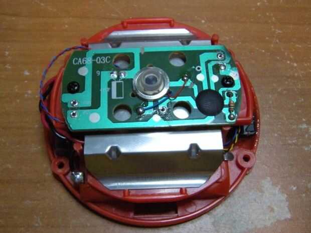 Ruta con cuidado los cables para que no se peguen hacia fuera en cualquier lugar y quedar apretados. Establecido el acero del resorte sobre el circuito y asegurarse de que no toque ninguna pieza cuando Pisa. Establecer el circuito original hacia abajo en la parte superior y atornille en su lugar. Finalmente vuelva a montar las piezas principales, vuelva a colocar los cuatro tornillos en la parte inferior y poner la goma pies de nuevo en.