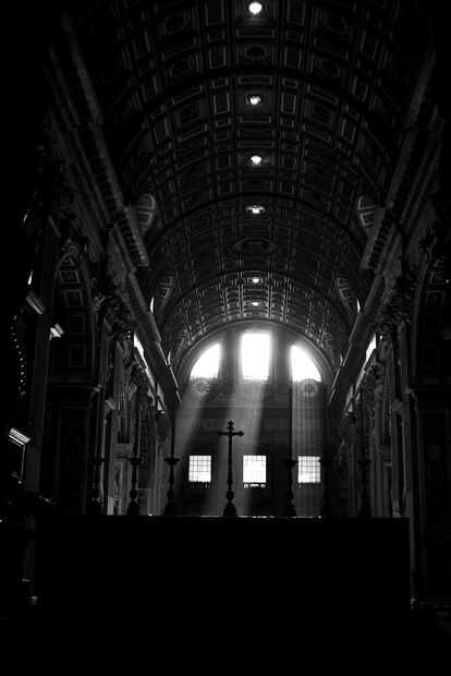 Altar del Vaticano: La iluminación natural del Vaticano es hermosa y hace que sea fácil capturar al mismo tema desde muchos ángulos diferentes e interpretaciones. Así que, ¿qué hago? Ángulo de cadera! Esta imagen, he decidido que una sombra, imagen B & W conservar algunas del temor natural. Esto era una edición simple de aumentar la sombra, disminuyendo el brillo y un toque de contraste y el cultivo.