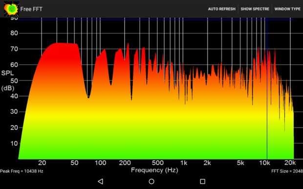 Por lo tanto, adjunto la respuesta de frecuencia de una música de la película India y medida utilizando un afinado Nexus 7 en distancia de 2 metros sobre la respuesta del eje.