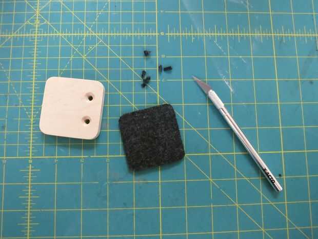 Con una cuchilla x-acto con una cuchilla afilada y la tapa como guía, cortar un cuadrado redondeado 2.3" de su fieltro de las lanas.