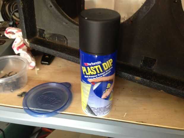 Solía spray Plasti Dip para cubrir algunos huecos en la cubierta de Tolex y también de la capa dentro de la caja y reducir cualquier traqueteo. En teoría al menos. Este producto seca a un acabado mate así que qué diablos.