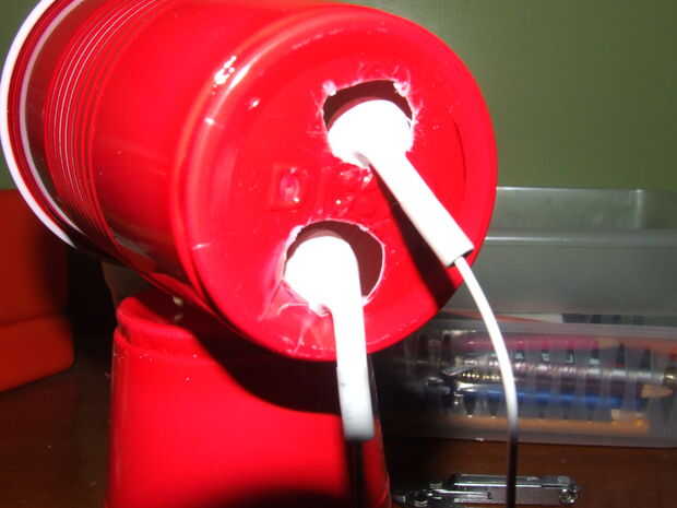 Acople 2 tazas. Debe encajar smooth-ish. Gire si no coinciden los orificios y palillos de dientes.