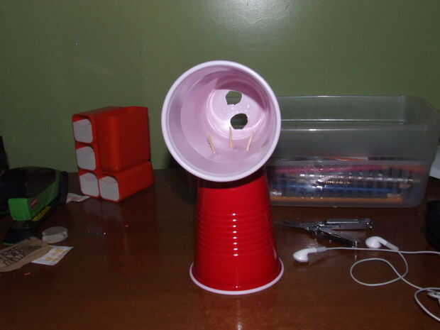 desear un altavoz poco fresco por debajo de cinco dólares, ahora aquí es unaPaso 1: fuentes de necesita 1.1toilet rollo de papel 2.2styrofome tazas 3 cuchillo o tijerasPaso 2: cortar los agujeros Paso 3: Deslice tazas en rolloPaso 4: diapositiva telé