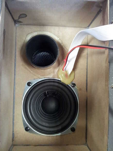 Fui para 3 luces alrededor de cada altavoz y puertos bajo intermitentes. La distancia entre el volumen y el bajo marca podría bot cambiar así que coloqué en medio de la vivienda.
