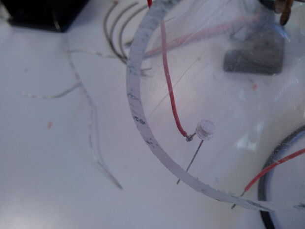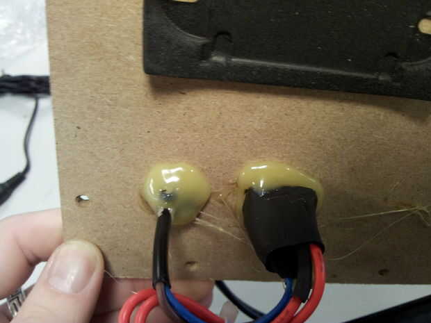 Arena hacia abajo de los carriles para exponer el cobre antes de taladrar para ejecutar su poder conduce de (yo 3 agujeros perforados para que yo pudiera tener luces a la izquierda, derecha y bajo)