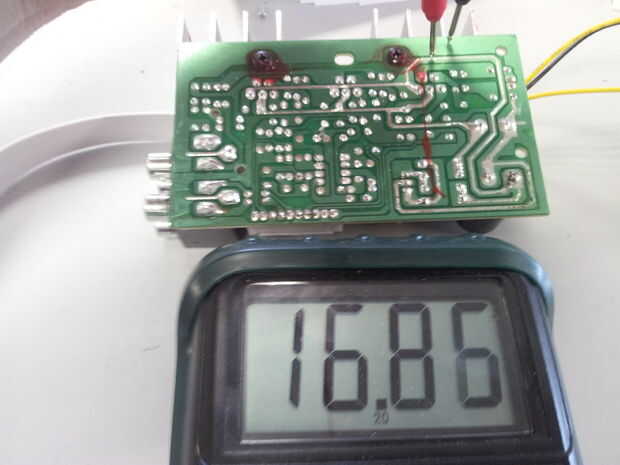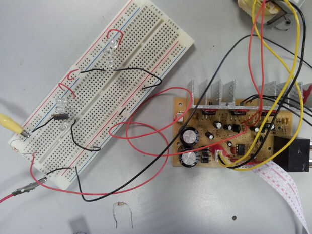 una vez ha correr una fuente de alimentación del tablero de amplificador y creado su circuito que debe obtener algo como esto: