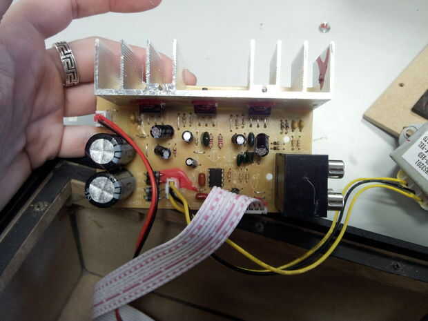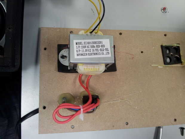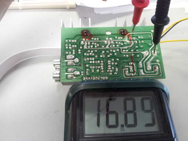Elegí un barato sistema 2.1, pelado y juega con el circuito. Aunque este sistema era AC (vivo en el Reino Unido) tenía transformador y rectificador puente para bajar la tensión y producir corriente continua. Un violín con el multímetro demostró producido 17V