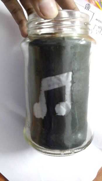 Después de esto, el papel manteca en la hoja negra de la cinta y tomar esta hoja entera y poner en las paredes internas del frasco.