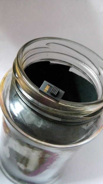 Ahora poner el interruptor en la parte superior y pegar en el frasco abriendo así que usted puede encender y apagar.