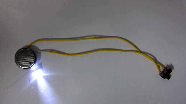 La celda de botón de 3v, l.e.d y el interruptor y el circuito decorativo.