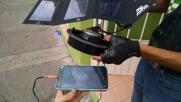 En las pruebas, podemos usar un aparato reproductor portátil, se puede usar otro panel solar para alimentar al aparato (instructivo).