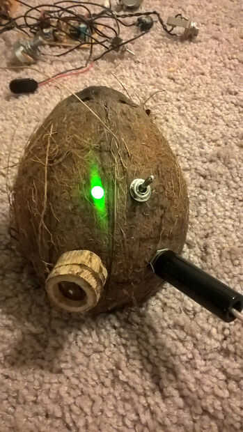 Este es uno de esos proyectos que una vez construido sólo para los diablos de la misma, y cada persona que lo ve quiere uno! Es demasiado tonto, con ambiente de isla de Gilligan de este ridículo a él. Ser seguro, divertirse, y encantaría saber las mejoras en la construcción. Retirar la carne es una parte dura, montaje los 9V, resulta que es algo que no tengo una buena solución para. De todos modos, disfrutar. Con componentes de alta calidad realmente esto podría ser un amplificador de práctica poco agradable.