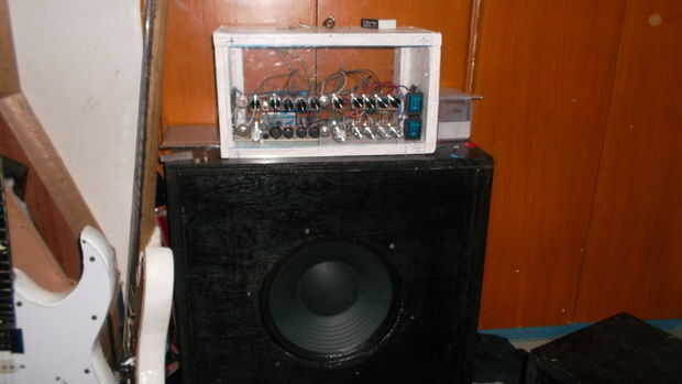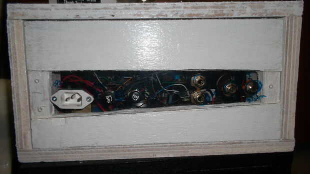 Puesto que el circuito tiene algunos componentes que el calor para arriba, disipadores de calor deben colocarse sobre él. También decidí poner los ventiladores de la CPU para ventilar todo dentro ya que hice una cabeza de amplificador muy pequeño, también añade un factor "cool" para mí. He añadido algunas luces de LED dentro para hacerla parecer más frío. Si quieres puede Agregar conmutadores de pedal (todavía se fortalecerán al mío). También es una buena adición al circuito de efectos send y return.