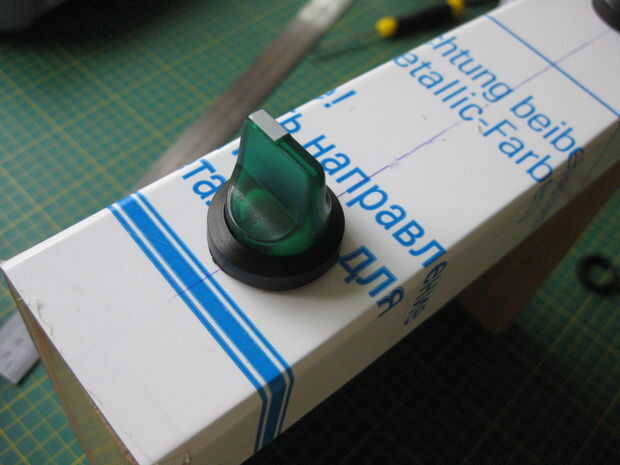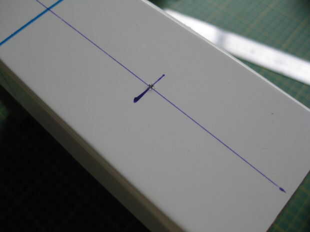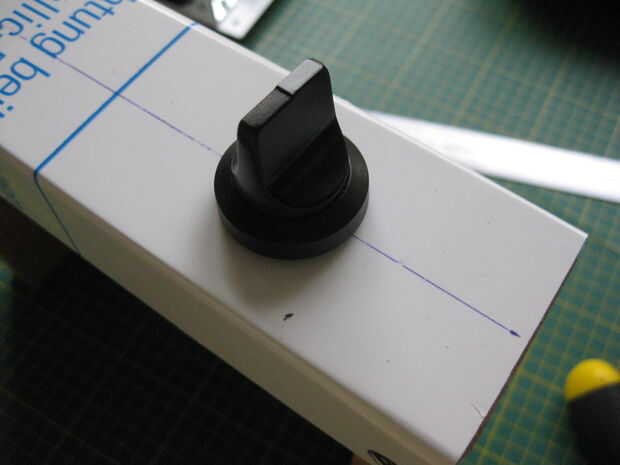 Marque la línea central del panel frontal, decidió quería mis interruptores y marcado y centro perforado para la perforación con una espada de 22mm de bits, esto funcionó bien y deja un agujero limpio.