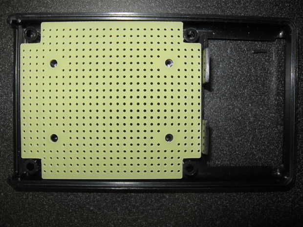 Comenzar colocando los componentes en la placa de circuito que tendrá que pasar por el recinto. Este recinto cuenta con un panel superior desprendible que se utilizará para el estéreo de volumen, ganancia y 1/4 de pulgada.